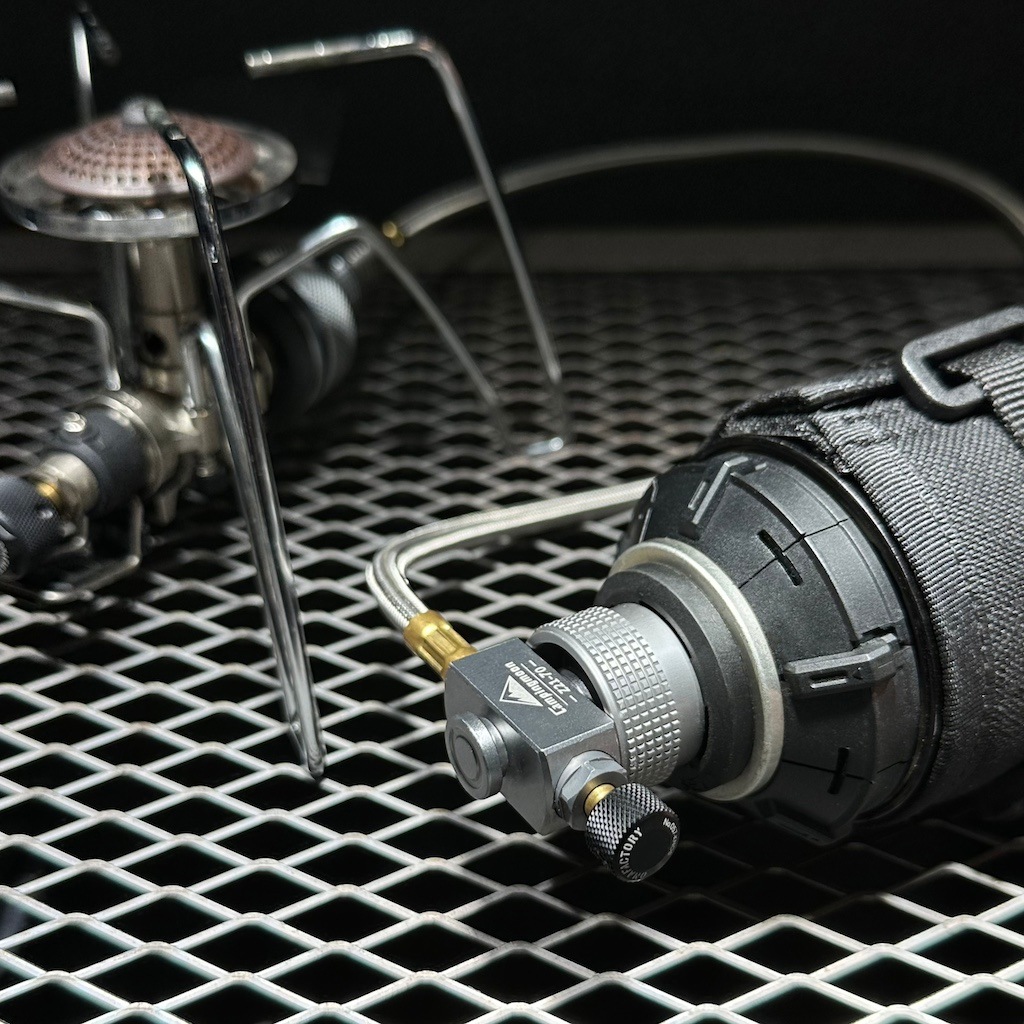 こちらの商品はキャンピングムーンバルプ付きガスホースに取り付け可能なガス調節ノブです。